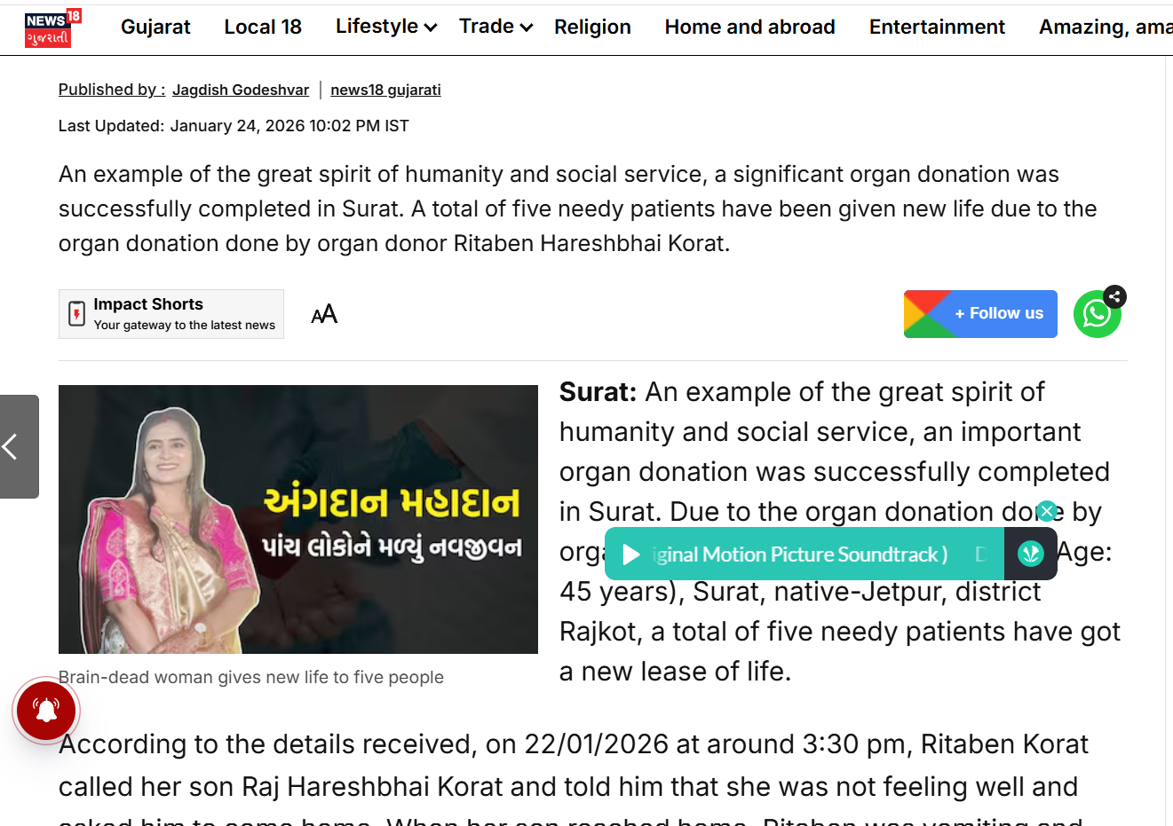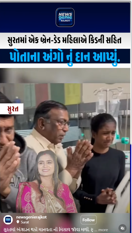 According to the report, organ donation by Ritaben Hareshbhai Korat in Surat gave a new life to five patients. The report also carried her photograph, matching the visuals seen in the viral video.