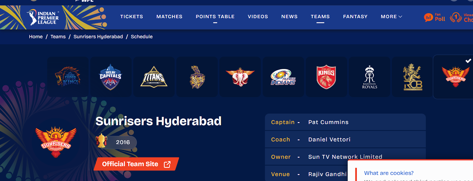- https://www.iplt20.com/teams/sunrisers-hyderabad/schedule