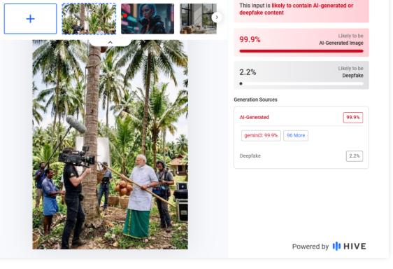 The viral image was then analyzed using AI detection tools. Results from HIVE Moderation indicated a 99% probability that the image is AI-generated.