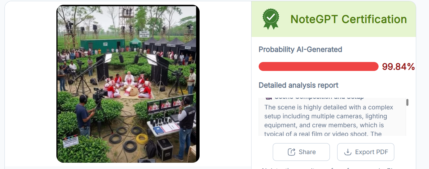 To further validate the findings, we also tested the image using another AI detection tool, NoteGPT, which similarly classified the image as 99% AI-generated.