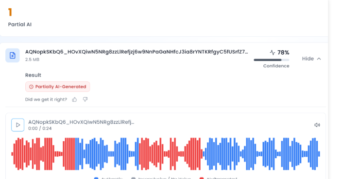 To further verify the authenticity of the video, several AI detection tools were used. Analysis through Aurigin.ai suggested a 78 percent probability that the audio in the viral clip was AI-generated.