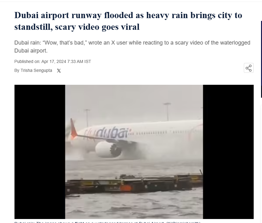 Further verification led to a report published by Hindustan Times on April 17, 2024, which featured similar visuals and confirmed that the footage was from the floods that hit Dubai in 2024.