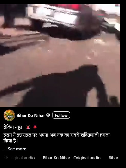 The video has been shared on Facebook with a caption claiming, “Iran has launched its most powerful attack on Israel. Thousands of soldiers have reportedly been killed. Massive protests have erupted within the country, and Israel appears completely helpless.”