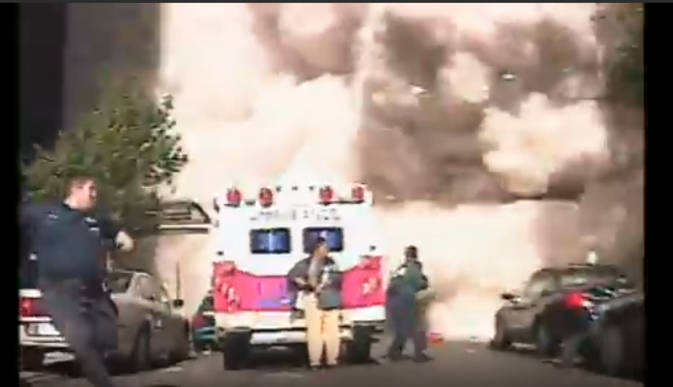 The relevant portion appears around the 2-minute 9-second mark. The video description identifies the footage as part of the September 2001 attacks on the World Trade Center in New York. Further, we found the same video in an archive folder on a website associated with the US Department of Commerce, which contains multiple images and videos related to the 9/11 attacks. This further confirms the origin of the footage.
