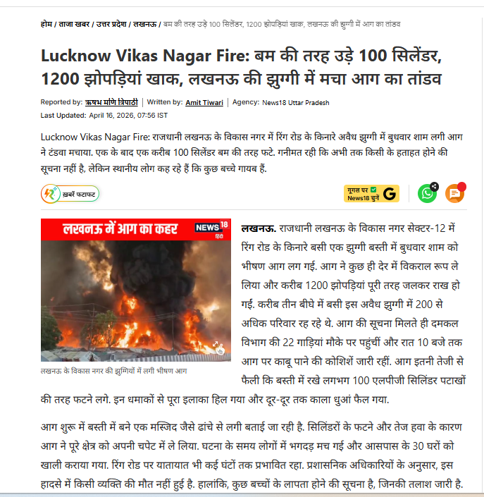Further confirmation came from the official X account of Lucknow Police, which shared an update on April 16, 2026. The police clarified that the incident was a fire outbreak in the Vikas Nagar area and that the situation had been brought under control.