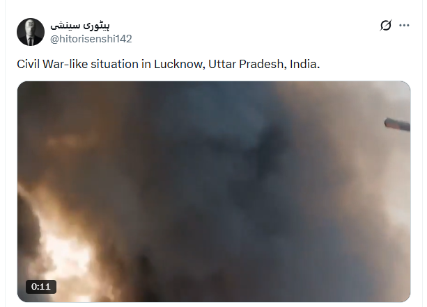 A video showing a massive blaze is going viral on social media with the claim that it captures an “attack” in Lucknow, Uttar Pradesh, suggesting that the city is witnessing a civil war-like situation. However, a fact-check by the CyberPeace Research Wing has found the claim to be false and misleading.