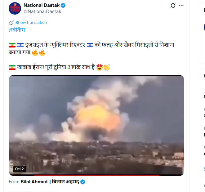 On social media platform X (formerly Twitter), a user shared the video on March 21, 2026, with the caption:“Israel’s nuclear reactor was targeted with Fateh and Khyber missiles. Well done Iran! The whole world is with you.”
