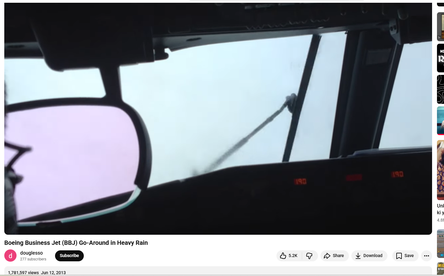 Further research led us to a report published by the American media website CNET, which featured the same visual. According to the report, the video shows a Boeing Business Jet attempting to land during heavy rainfall. The aircraft was conducting a CAT I Instrument Landing System (ILS) approach when a sudden downpour drastically reduced visibility at decision height. As the runway briefly disappeared from view, the pilots aborted the landing and carried out a go-around. The aircraft later landed safely once weather conditions improved. (The link to the CNET report and its screenshot are provided below.)